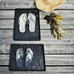 Boot Tray ist eine schlanke, prakische Stiefelablage, die Schmutz, Steine und Flüssigkeiten auffängt, damit der Boden nicht schmutzig wird. In Größe S passt ein Paar Erwachsenenschuhe.