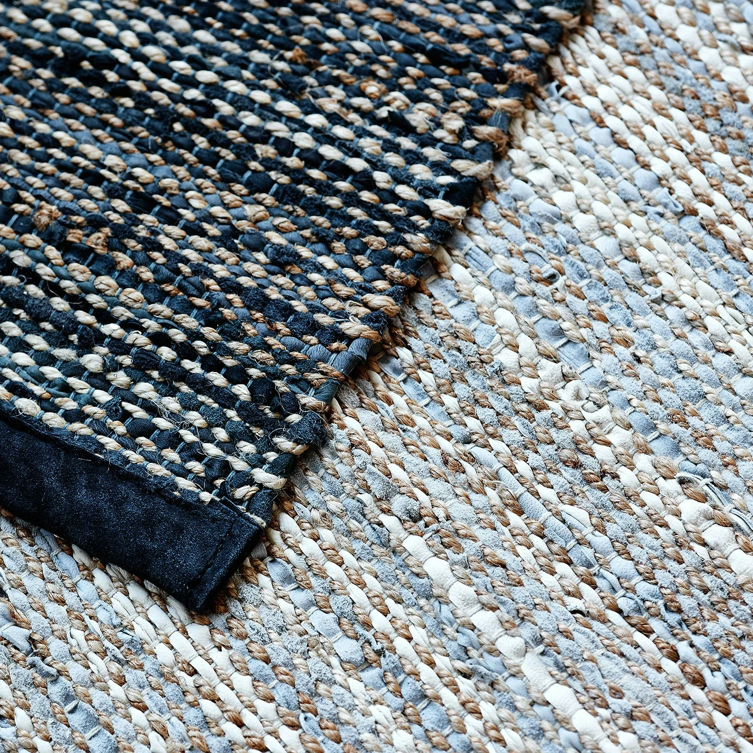 Der klassische Flickenteppich in der modernen Version besteht aus einer Kombination von übrig gebliebenen Ledern aus der Modebranche und Faser Jute. Die Überreste sind frugally ausgewählt und miteinander verwoben mit der Hand die besten Ergebnisse zu erzielen. Die Größe kann um 3-5% variieren.