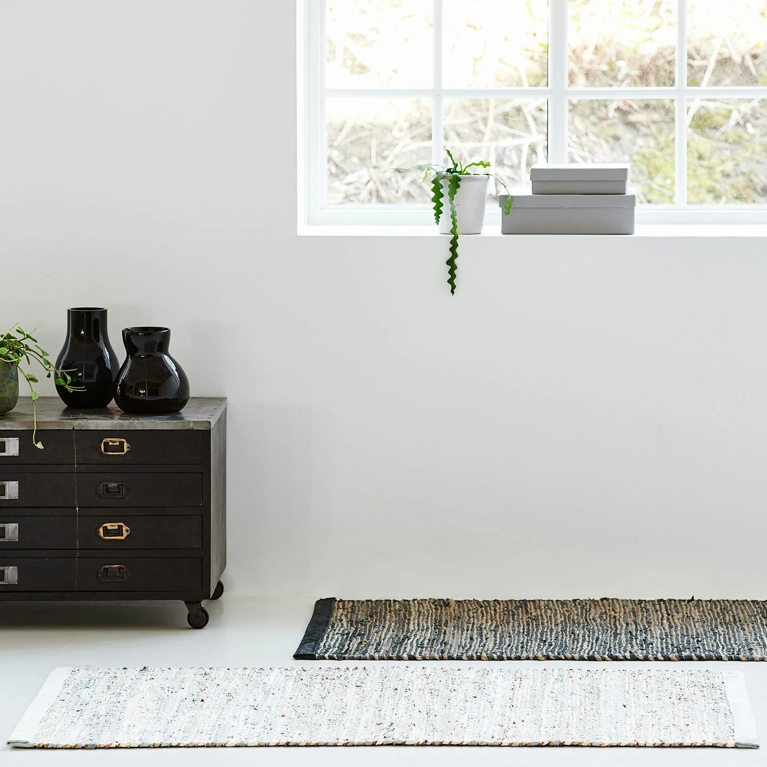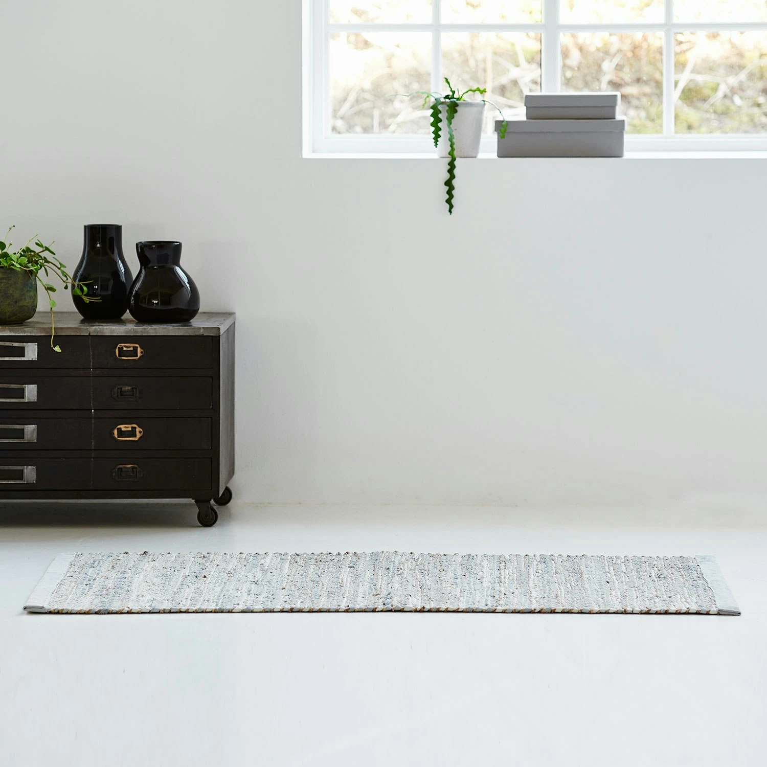 Jute/Leather Teppich 75x200cm, Hellgrau